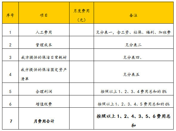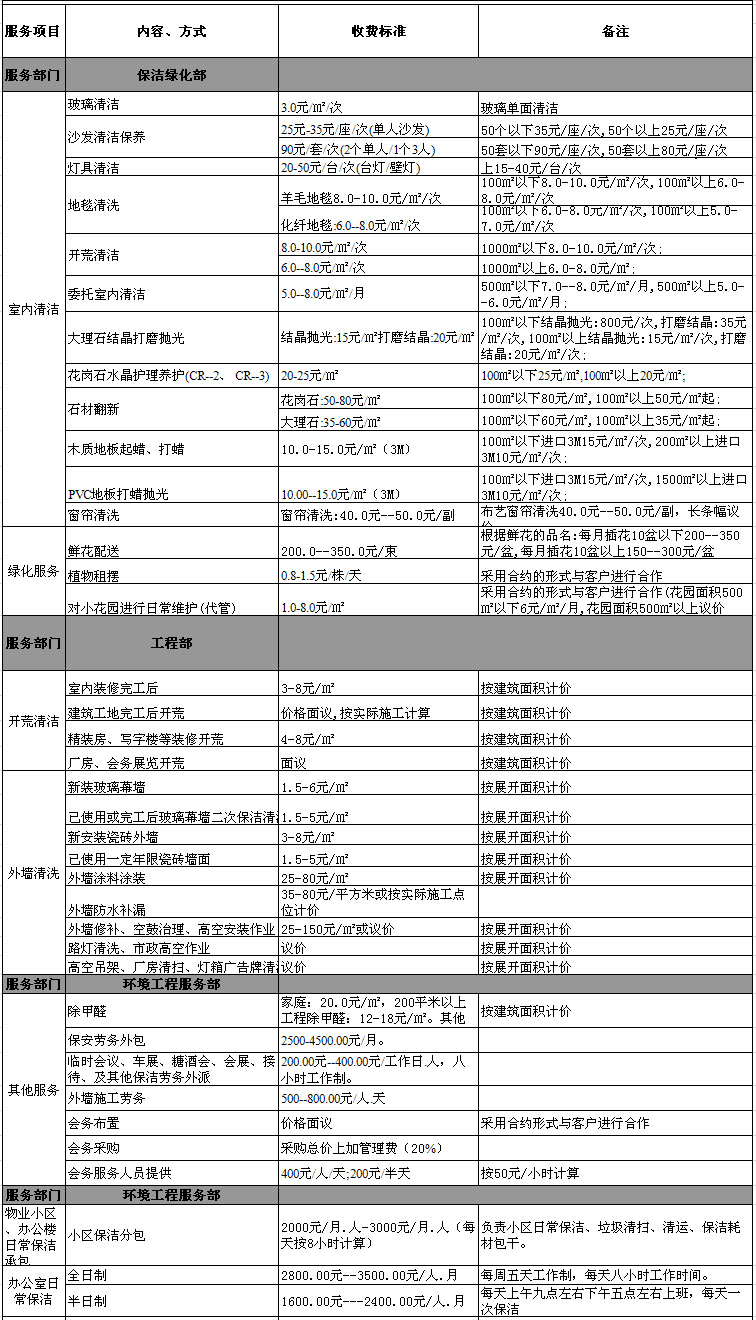 3、其他有償清潔服務(wù)按市價優(yōu)惠計價。