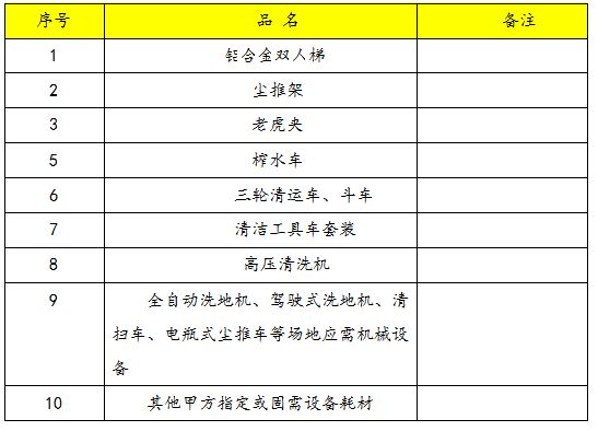 五)、我方提供的保潔服務(wù)所需固定資產(chǎn)清單(分攤/月:元)