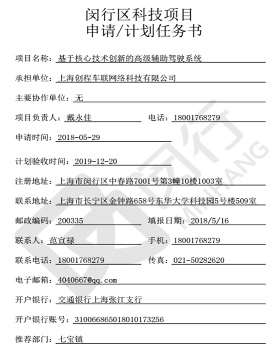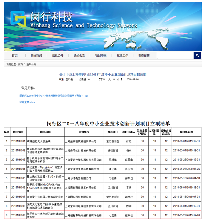 2018年9月6日,我司“基于核心技術(shù)創(chuàng)新的高級(jí)輔助駕駛系統(tǒng)”經(jīng)過上海市閔行區(qū)科委專家評(píng)審,獲得專家的一致好評(píng),已于9月6日通過項(xiàng)目立項(xiàng),項(xiàng)目立項(xiàng)后將獲得閔行科委資助資金30萬元。