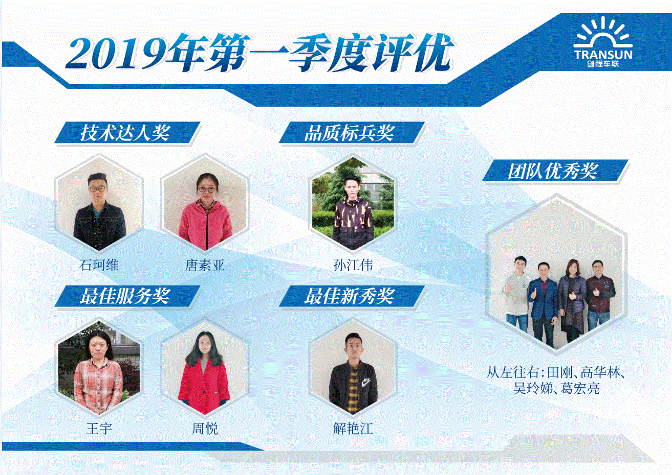 經(jīng)過層層篩選,第一季度優(yōu)秀員工評選活動已圓滿落下帷幕,他們分別是:優(yōu)秀團隊品質(zhì)管理部,技術(shù)達人石珂維、唐素亞,最佳服務(wù)獎王宇、周悅,品質(zhì)標兵孫江偉,最佳新秀解艷江,讓我們一睹他們的風(fēng)采。