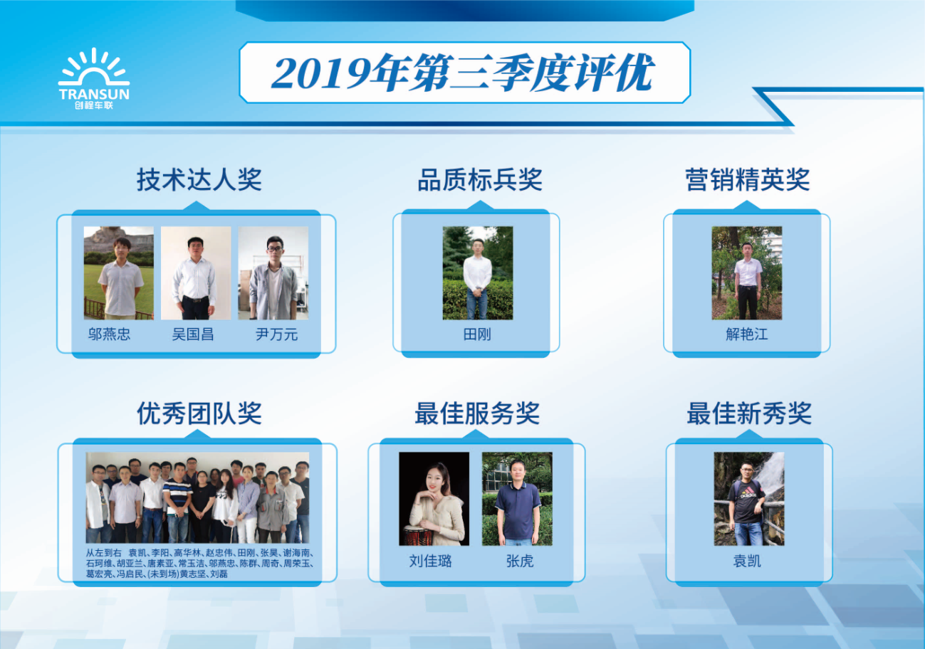 優(yōu)秀團(tuán)隊(duì)蘇公交項(xiàng)目團(tuán)隊(duì),技術(shù)達(dá)人鄔燕忠、吳國(guó)昌、尹萬(wàn)元,最佳服務(wù)劉佳璐,張虎,品質(zhì)標(biāo)兵田剛,最佳新秀袁凱,營(yíng)銷(xiāo)精英解艷江,他們?cè)谶@一季度中團(tuán)結(jié)協(xié)作、積極創(chuàng)新、勤勤懇懇,為公司發(fā)展做出貢獻(xiàn),下面讓我們一睹他們的風(fēng)采。