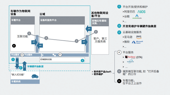 因此,這一套包含了抽象軟件層和基礎(chǔ)服務(wù)層(包括OS、車內(nèi)網(wǎng)絡(luò)、診斷等固件)在內(nèi)的基礎(chǔ)軟件平臺解決方案將成為車企需要把握的價值高地,也將成為供應(yīng)商的全新產(chǎn)品機遇。這些機遇不但包括軟件平臺本身以及端到端應(yīng)用軟件的提供,也包括相關(guān)的服務(wù)提供,如云服務(wù)、OTA服務(wù)等,如圖7。