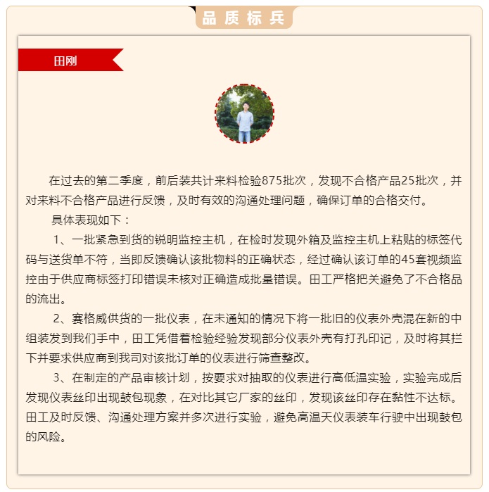 2023年第二季度評優(yōu) —— 品質(zhì)標兵