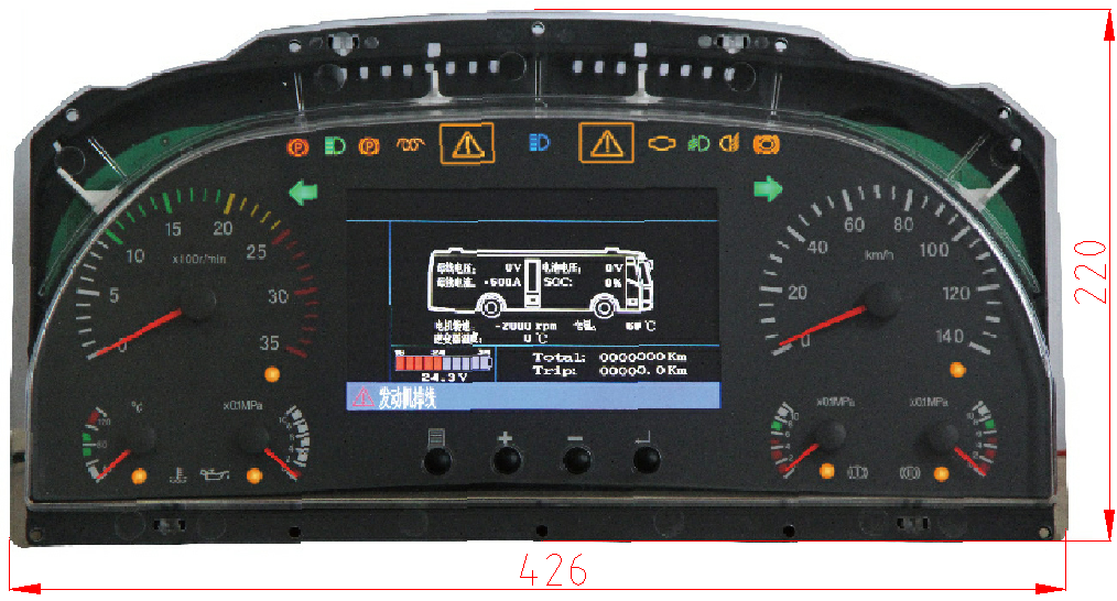 - 6個步進(jìn)電機(jī)驅(qū)動的指針表盤 - 19個LED符號片 - 多個TFT符號片 - 7寸TFT彩色液晶屏 - 一個多音頻蜂鳴器 |